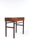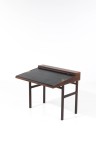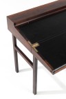 Desk with retractable tabletop Teak, leather and brass Edited by Willy Beck Model created circa 1955 H 78 × L 90 × W 42/70 (opened) cm