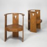 Pair of armchairs Oak Date of creation : circa 1910 H 82 × W 65.5 × D 57.5 cm Provenance: State railway office chair, Helsinki railway station Bibliography: Mirika Hausen, Kirmo Mikkola, Anna-Lisa Arnberg and Tytti Valto, The Architecture Of Eliel Saarinen: Projects 1896-1923, Cambridge, 1990, p. 168, fig. 23; Peter Fiell, Scandinavian Design, Cologne, 2002, p. 56