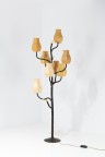 Floor lamp - 'Sienne' model Unique piece Wrought iron with patina and gilded with gold leaf and silk Monogrammed 'EG' on the base Model created in 2004 H 200 × Ø 70 cm