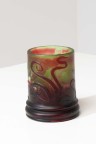 Brush pot with Japanese decor in engraved crystal, acid-etched