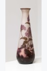Large vase in multilayered glass, engraved cameo decor, acid-etched with flowers on translucent background Model created between 1904 and 1906 Star signature on the body H 62 cm