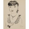 Emilio Di Cavalcanti de Albuquerque (1897-1976) Portrait de femme à robe fleurie Encre et lavis sur papier Monogrammé en bas à droite Porte le cachet de l'atelier en bas à gauche 20,5 × 18 cm
