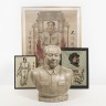 Ensemble composé d'un tableau, de deux tapisseries et d'un grand buste de Mao en plâtre, Chine