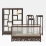 Ensemble composé de deux vitrines et trois sellettes en bois, Chinevitrines : 67 x 51 x 17 cm