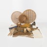 Ensemble d'objets en bambou dont des chapeaux, une robe en perles et des évantails, Chine