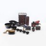 Ensemble de boîtes et de récipients en bois laqué noir dont un panier pique-nique et un nécessaire de moine, Chine