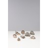 Set of five table decorations: Orange, lemon, pepper, garlic, leaf Silvered metal Joint: Three shells mounted silver L 15 to 6 cm