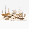 Ensemble de maquettes de bateaux en bois et une estampe représentant un port, Chine
