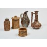 Ensemble en grès de Beauvais comprenant deux aiguières, un pot à tabac et boite à thé.
