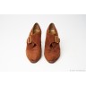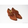 ESCADA PAIRE DE TROTTEURS en daim noisette, boucles en métal doré signées P 37,5 it Quelques petites marques d'usure sur daim