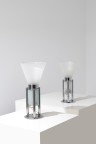 Pair of lamps Chromed metal and glass Edited by Mitis Manufacturer's stamp on one lamp Model created circa 1935 H 50 × Ø 24 cm