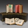 FLORIAN, Jean-Pierre Claris de Œuvres complètes Paris, Didot l'aîné, 1786-1807 ŒUVRES COMPLÈTES COMPRENANT L'ÉDITION ORIGINALE DES TRADUCTIONS DE CERVANTÈS : DON QUICHOTTE ET GALATÉE. TRÈS BEL EXEMPLAIRE DE RENOUARD, AVEC LES GARDES CARACTÉRISTIQUES EN PEAU DE VÉLIN, PUIS DE PIXERÉCOURT Œuvres complètes, en 24 volumes. Édition en partie originale Fables. ÉDITION ORIGINALE (vol. 1) ; Mélanges. ÉDITION ORIGINALE (vol. 2) ; Théâtre. Seconde édition (4 tomes, vol. 3 à 5 et 24) ; Numa Pompilius. Seconde édition (2 tomes, vol. 6 et 7) ; Gonzalve de Cordoue. Seconde édition (3 tomes, vol. 8 à 10) ; Don Quichotte de la Manche. ÉDITION ORIGINALE de la traduction (6 tomes, vol.s 11 à 16) ; Galatée. Seconde édition (vol. 17) ; Estelle. Troisième édition (vol. 18) ; Nouvelles. ÉDITION ORIGINALE (2 tomes, vol. 19 et 20) ; Éliezer et Nephtaly. ÉDITION ORIGINALE (vol. 21) ; Œuvres posthumes. ÉDITION ORIGINALE (vol. 22) ; La Jeunesse de Florian ou Mémoires d'un jeune Espagnol. ÉDITION ORIGINALE (vol. 25) [Avec :] ROSNY, Antoine Joseph-Nicolas de, Vie de Florian. Paris, Didot jeune, 1797. ÉDITION ORIGINALE (vol. 23) Soit, 25 volumes in-16 (133 x 75mm) en tout ILLUSTRATION : 123 gravures, dont quelques-unes en deux états : eau-forte pure et avec la lettre, par Villiers, Flouest, Quéverdo, Pernotin, Vignaud, Laplace et Monnet RELIURES UNIFORMES DE L'ÉPOQUE SIGNÉES DE BOZÉRIAN. Maroquin bleu nuit à grain long, décor doré, filets d'encadrement, dos à nerfs très ornés, gardes en peau de vélin, tranches dorées. Étuis PROVENANCE : François Bozerian (note au crayon) -- Antoine-Augustin Renouard (gardes en peau de vélin ; note au crayon) -- René-Charles Guilbert de Pixerécourt (ex-libris) -- Alfred Piet (ex-libris) -- Lucien Tissot-Dupont (ex-libris) RÉFÉRENCES : Cohen-de Ricci, 403 - Tchemerzine, III, pp. 281 et suiv. Édition originale des traductions de Florian de Cervantès
