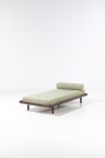'Luxor' daybed Imbuia and fabric Edited by OCA Model created circa 1960 H 24 × L 191 × W 92 cm Bibliography: S. Cals, Sergio Rodrigues, catalogue raisonné, Ed. Icatu, Rio de Janeiro, 2000, unpaginated