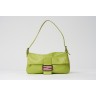 FENDI SAC "BAGUETTE" en cuir pistache, garnitures en metal chrome 26 x 14 x 4 cm Mini usure aux coins, quelques tres legeres marques Iconographie : droits reserves