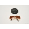 FERRARI PAIRE de LUNETTES de SOLEIL aviateur pliables en métal doré Dans son étui d'origine en cuir Env. 14 cm Petites marques sur métal doré