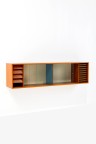 Wall-mounted cabinet Mahogany, lacquered wood and glass Edited by Niels Vodder Model created in 1937 H 55 × L 210 × W 39,5 cm
