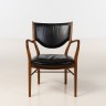Finn Juhl (1912-1989) Modèle NV46 Fauteuil Teck et cuir noir Edition Niels Vodder Date de création : 1946 H 83 × L 64 × P 55 cm Bibliographie : Per H. Hansen, Finn Juhl and His House, Hatje Cantz, 2014, modèle reproduit pp.14 et 32