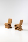 Pair of ‘Wiggle’ chairs Corrugated cardboard and Masonite Edited by Easy Edges Model created in 1972 H 85 × L 40,5 × W 54 cm Bibliography: N. Stungo, ‘Frank Gehry’, Ed. Carlton, London, 2000, similar model p. 72