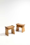 Franz Xaver Sproll (20th c.) Pair of stools Gouged wood One engraved '1950' and the other '1951' on the back of the seating Model created in 1950 H 45 × L 49 × W 29,5 cm