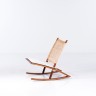 Fredrik A. Kayser (1924-68) Modèle 599 Rocking chair Teck , cannage, tissu et laiton Edition Vatne Mobler Date de création : 1958/59 H 77 x L 80 x P 78 cm