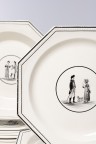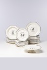 Set of hexagonal plates Signed 'Montereau' on the base - 7 soup plates: H 4ר 24 cm - 17 dinner plates : H 2.5ר 25 cm - 12 dessert plates: H 2ר 20.5 cm - 1 cake dish: H 6,5ר 24,5cm