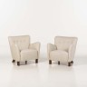 Fritz Hansen Modèle 1669 Paire de fauteuils Noyer et textile Date de création : vers 1938 H 76 × L 81 × P 70 cm