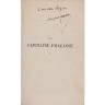 GAUTIER, Théophile Le Capitaine Fracasse Paris, Charpentier, 1863 EXCEPTIONNEL EXEMPLAIRE AVEC ENVOI DE GAUTIER À L'UNE DE SES MAÎTRESSES ÉDITION ORIGINALE 2 vol. in-12 (174 x 112mm) ENVOI : à ma chère Regina, Théophile Gautier PIÈCE JOINTE : l.a.s. de Maurice Chalvet à André Tissot-Dupont, 1 p. in-12, papier à en-tête de la librairie Ronald Davis : "10 mai [1979]. Voici les renseignements concernant Régina. Il s'agit de Régina Lhomme, fort jolie personne qui vivait à Londres où Théo la rencontra en 1849, à la suite de son voyage en Hollande. Elle était mariée à Alphonse Lhomme, que Gautier connut, et qu'il appelait "le plus malin des bourgeois", ce qui ne l'empêcha pas de s'envoyer proprement sa femme ! (...) En 1871, à Versailles, effondré par les événements, il écrit encore à sa chère Régina "toujours jeune et la plus belle". (...) Tout à vous cher Monsieur. M Chalvet" RELIURES DE L'ÉPOQUE. Dos longs de chagrin vert, tranches mouchetées PROVENANCE : Maurice Chalvet RÉFÉRENCES : Clouzot, p. 129 : "rare en reliures d'époque de qualité" -- Carteret, I, p. 333 -- Vicaire, III, 926