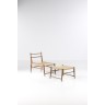 Geneviève Pons (20th c.) Lounge chair and footstool Oak wood and straw Model created in the 1960s H 72,5 × L 58 × P 85 cm (lounge chair) H 41 × L 67 × P 54 cm (footstool)