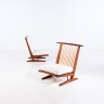 George Nakashima (1905-1990) Conoid Bureau et chaise Noyer d'Amérique Bureau daté April 1985 Chaise marquée Frieman Date de création : 1960 et 1985 Bureau : H 72,5 × L 215 × P 97 cm Chaise : H 90,5 × L 50,5 × P 47,5 cm Bibliographie : George Nakashima A Master's Furniture and Philosophy" - Ed. the Wing (Wing Luke Museum of the Asian Pacifi American Experience ) Seattle, 2003, exemplaire similaire reproduit p. 67