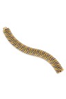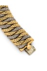 1970s Magnificent articulated and twisted ribbon bracelet in 18k (750‰) two-tone gold with oval chain links Marked with the maker's mark of Georges Lenfant, and hallmark Length: 20.5 cm Weight: 117.2 g