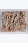 Underwear and various fabrics glued onto canvas in a Plexiglas case