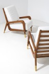 Pair of armchairs Walnut, brass and fabric Edited by Casa e Giardino Model created in the 1930 H 85×L 62×W 83cm Expertise conducted by the Gio Ponti Archives