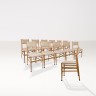 Gio Ponti (1891-1979) Modèle 646/3 Une série de douze chaises Frêne et skai Edition Cassina Date de création : vers 1954 H 83 × L 43 × P 41 cm Provenance : Hôtel Royal, Naples