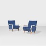 Gio Ponti (1891-1979) Modèle n°803 Paire de fauteuils Noyer et textile Edition Cassina Date de création : 1954 H 78 × L 72 × P 72 cm Une expertise des archives Gio Ponti portant le numéro 15084/000 sera remise à l'acquéreur.