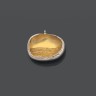 Giorgio VIGNA (né en 1955) Pendentif en forme de galet en métal argenté et doré à la feuille d'or et verre de Murano. Cordon en cuir. Signé. Années 2000 Dimensions : 5 x 5 cm Dans sa boîte d'origine.
