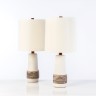 Gordon & Jane Martz (XXe) Paire de lampes Céramique, noyer et laiton Edition Marshall Studios Signées - Etiquette Date de création : années 1960 H 85 × Ø 18 cm (sans abat jour) H 85 × Ø 40,5 cm (avec abat jour)