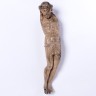 Grand Christ en bois sculpté. Tête inclinéevers l’épaule droite, ceinte d’une couronne