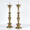 Grande paire de pique-cierges en bronze, fût tourné en vase et balustre, coupelle, haute basecirculaire moulurée.