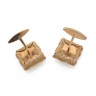 GÜBELIN 1970s Pair of square cufflinks in 18k yellow gold (750‰), finely chiselled on a burgau mother-of-pearl background Maker's Mark, engraved 750 Dimensions : 2 x 2 cm Gross weight : 30,5 g Signed presentation case