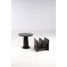 Round black lacquered wood pedestal table and newspaper stand Wood and leather In the Art Deco taste H 60 x D 62 cm Newspaper stand: H 45 x W 40 x D 50 cm