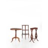 Gueridon tripode en bois naturel, le plateau à décor de rosaces, reposant sur un fût balustre H 63 x D 56 cm Joint : table d'appoint à trois plateaux (H 77 cm) et un vide poche de forme rectangulaire, piétement lyre (H 66 cm)