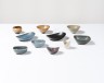 Gunnar Nylund (1904-1997) Suite de dix coupes Grès émaillé Edition Röstrand Date de création : vers 1950 Hauteur minimum : 4,5 cm Hauteur maximum : 7 cm Largeur minimum : 6,5 cm Largeur maximum : 19,5 cm