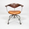Swivel Office armchair Leather, mahogany and steel Published by Johannes Hansen Creation date: circa 1955 H 73.5 × W 73 × D 50 cm