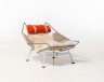Hans J. Wegner (1914-2007) GE 225 Flag Halyard Chair Fauteuil Métal chromé et laqué blanc, cordage, coussin et peau Edition Getama Date de création : 1950 H 78 × L 104 × P 117 cm Bibliographie : “Wegner, just one good chair”, Christian Holmsted Olesen, Hatze Cantz, 2014, p. 171 “Danish Chairs”, Noritsugu Oda, 1996 Edition Chronicle books, p. 112 Design Museum Danmark, modèle référencé sous le n° RP1309