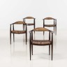 Hans J. Wegner (1914-2007) The chair PP 503 Suite de quatre fauteuils Bois et cannage Date de création : 1949 H 75,5 × L 64 × P 50 cm Bibliographie : - Danish Chairs, Noritsugu Oda, Ed. Chronicle Books, 1999 / Variante p 108-109 - Museum for nordisk Kunst and design, Hans J.Wegner et nordisk designikon fra tonder, 2014, p.52-70 - Christian Holmsted Olesen, Wegner, just one good chair, catalogue de l’exposition au Design Museum Denmark , Ed.Hatjecantz, 2014, p.52