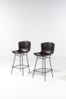 Pair of high stools Lacquered metal, chrome-plated, quilted leather shell Knoll International Edition Publisher's stamp Model created circa 1955 Contemporary edition H 105× L 52 × P 55 cm