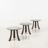 Harvey Probber (1922-2003) Suite de trois tables d'appoint noyer, terrazzo et laiton Date de création : 1960 H 44,5 × L 55 × P 48 cm Bibliographie : Modern Americana Studio Furniture from High Craft to High Glam, Todd Merrill et Julie V. Iovine, Ed. Rizzoli New-York, 2008, p. 188