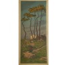 Henri Rivière (1864 - 1951) La pleine lune. - Le crépuscule. Deux planches de la série La Féerie des Heures. 59, 5 x 24,5 cm. Deux lithographies en couleurs sur vélin, timbrées, un peu jaunies. Quelques traces de plis, cassures, quelques taches, déchirures dans les bords. La première est doublée, cassure dans l'angle supérieur gauche. Petites marges.