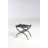 HERMES, in the taste of Curule armchair Black lacquered metal and leather Rests on four hoof-shaped legs H 51 x W 50 x D 37 cm