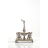 A silver oil and vinegar cruet with neoclassical decoration of scrolls and dolphins resting on four claw feet High. 31 cm.